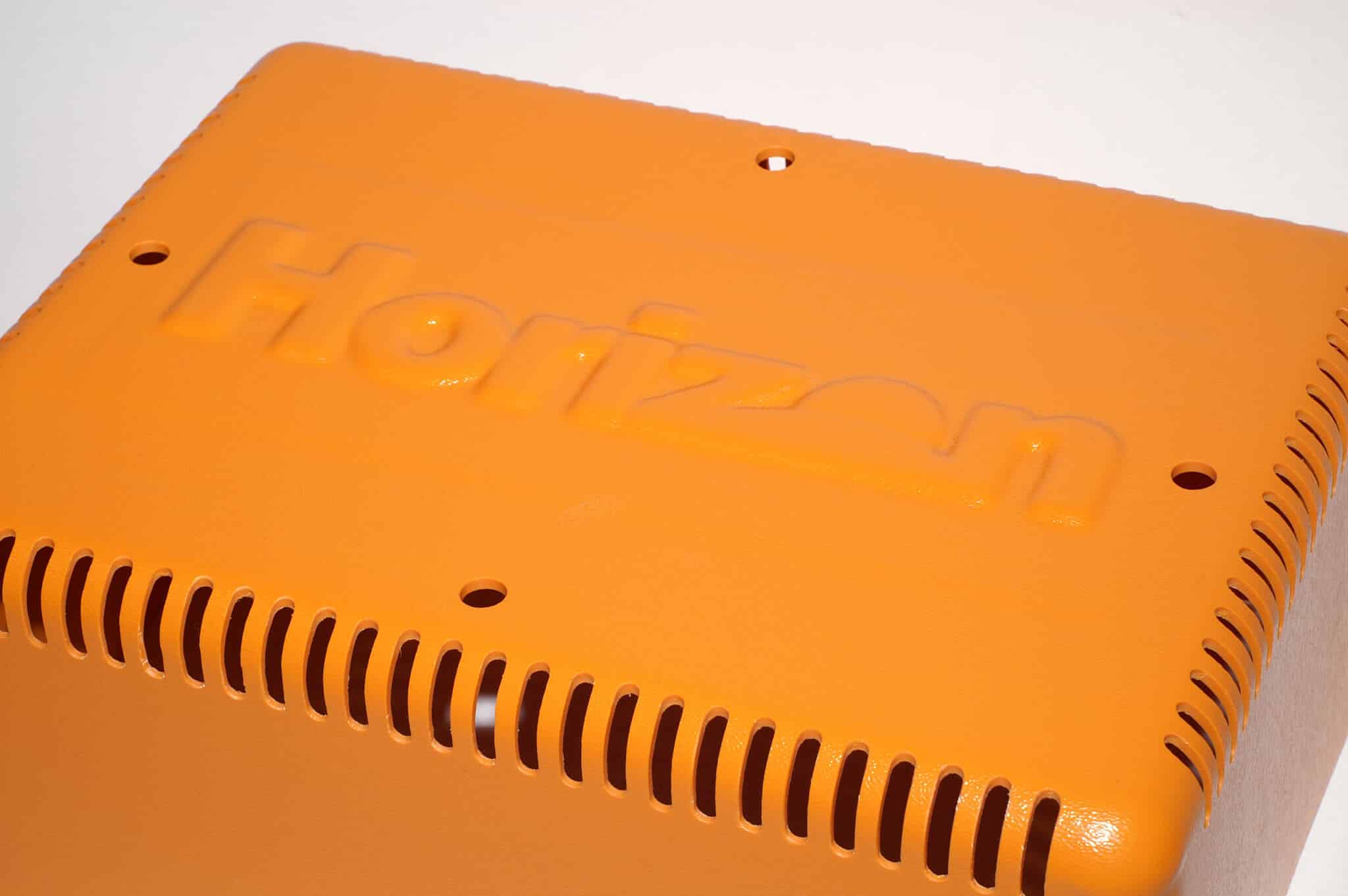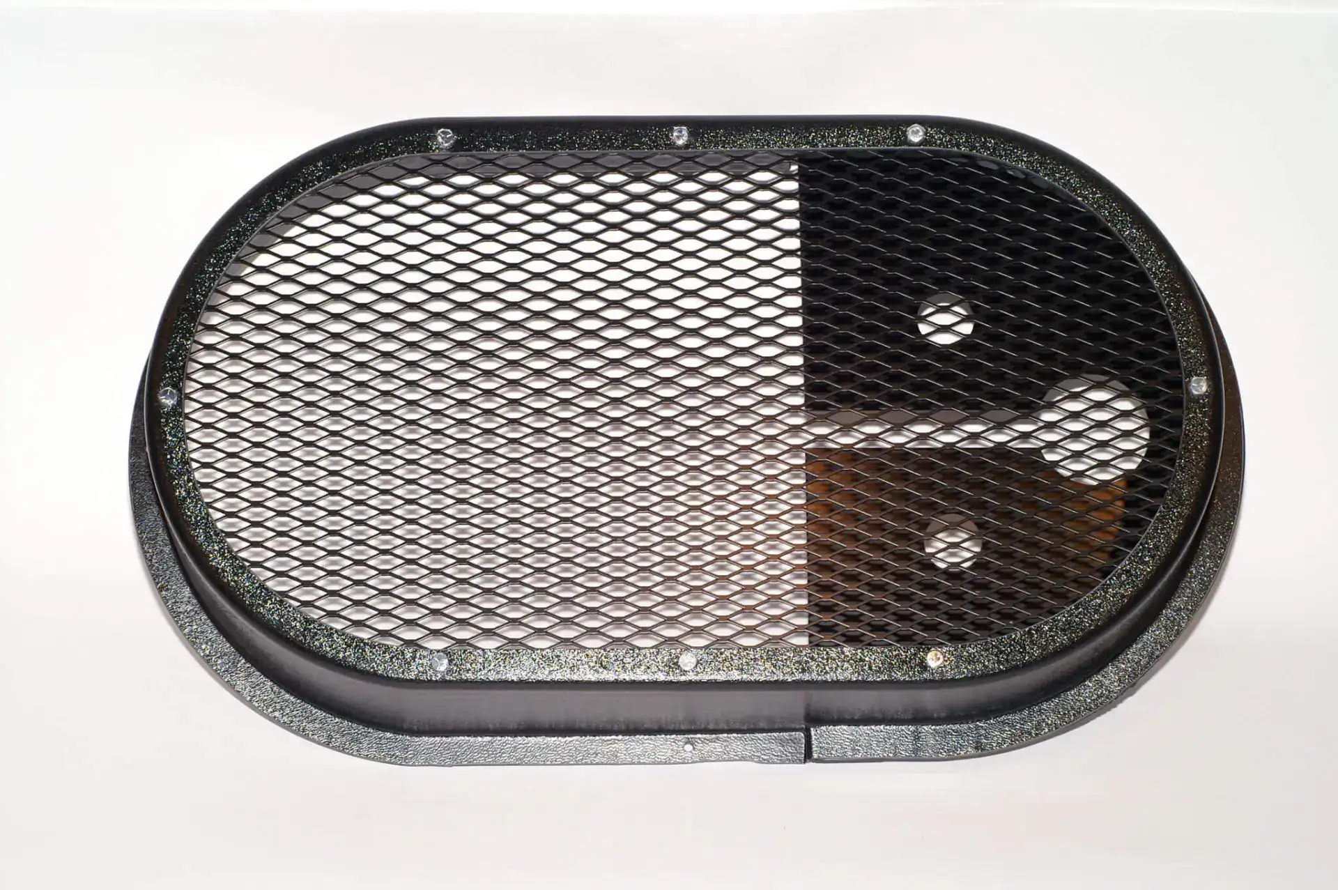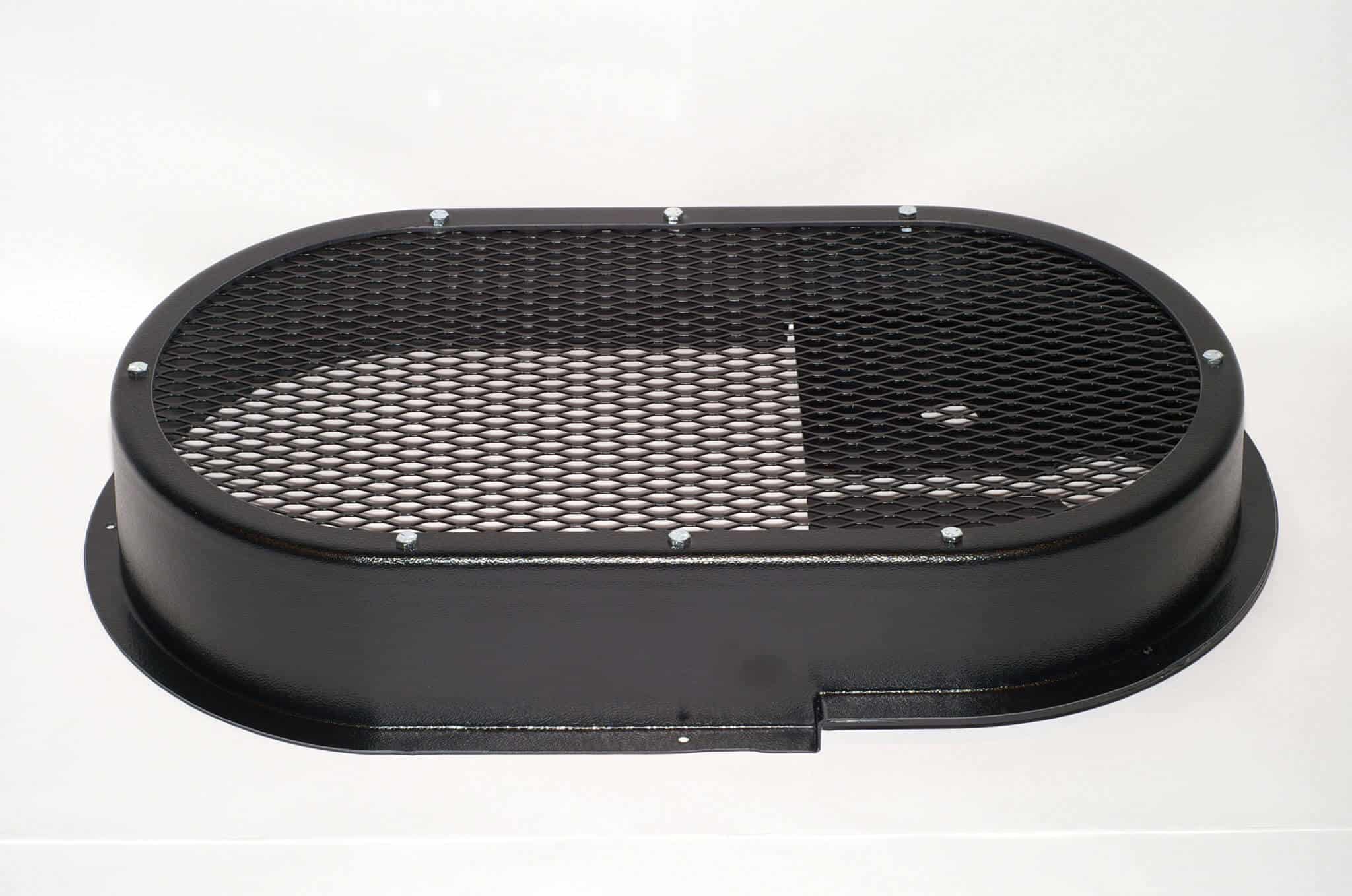 When airflow is needed in an application, we can add expanded metal mesh for venting purposes. A manufacturer of furnaces uses this guard, and airflow to the fan is very important. We’ve also glued on a backplate that was cut out by the CNC. Our fabrication uses a high-strength two-part adhesive.