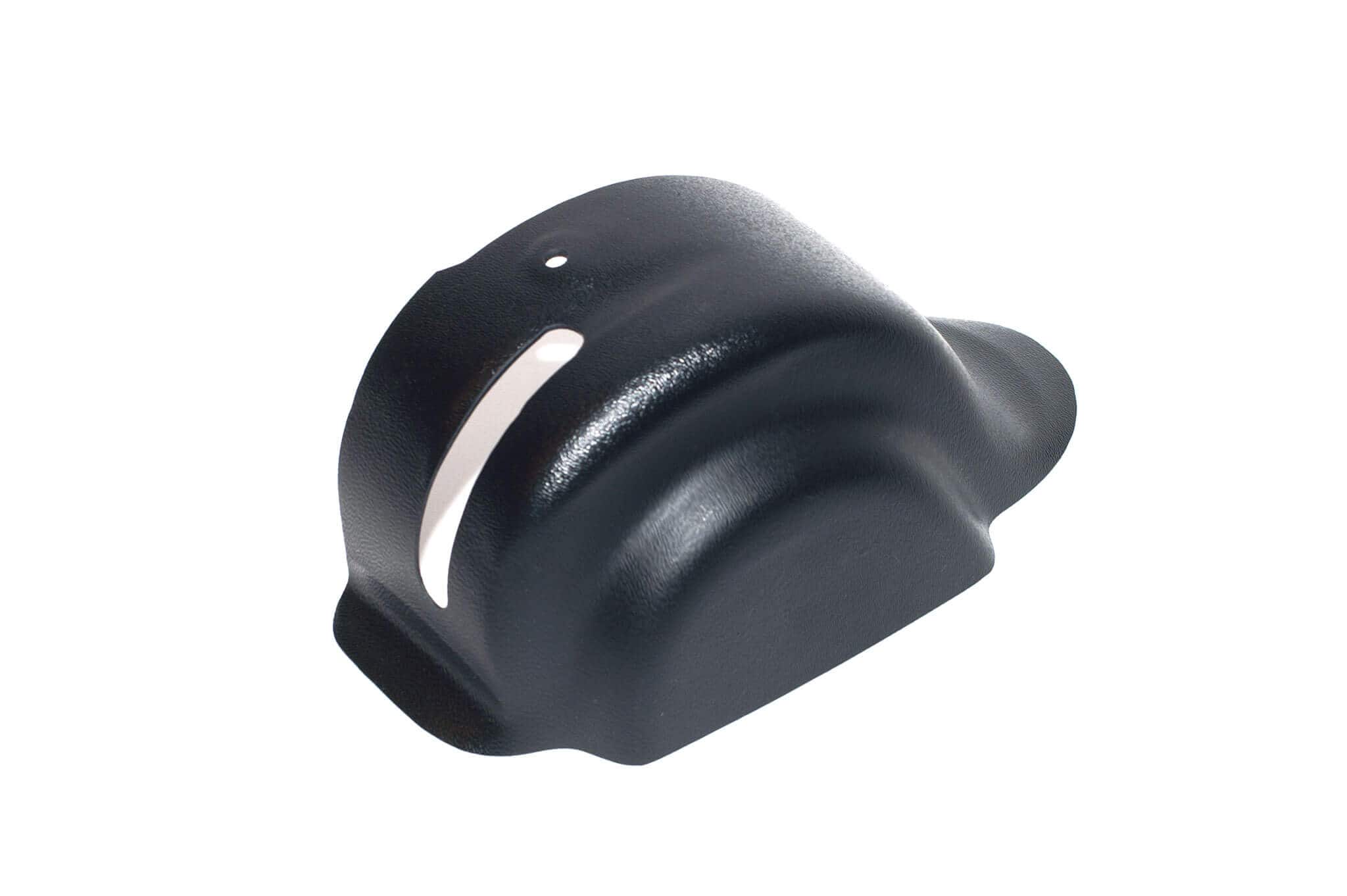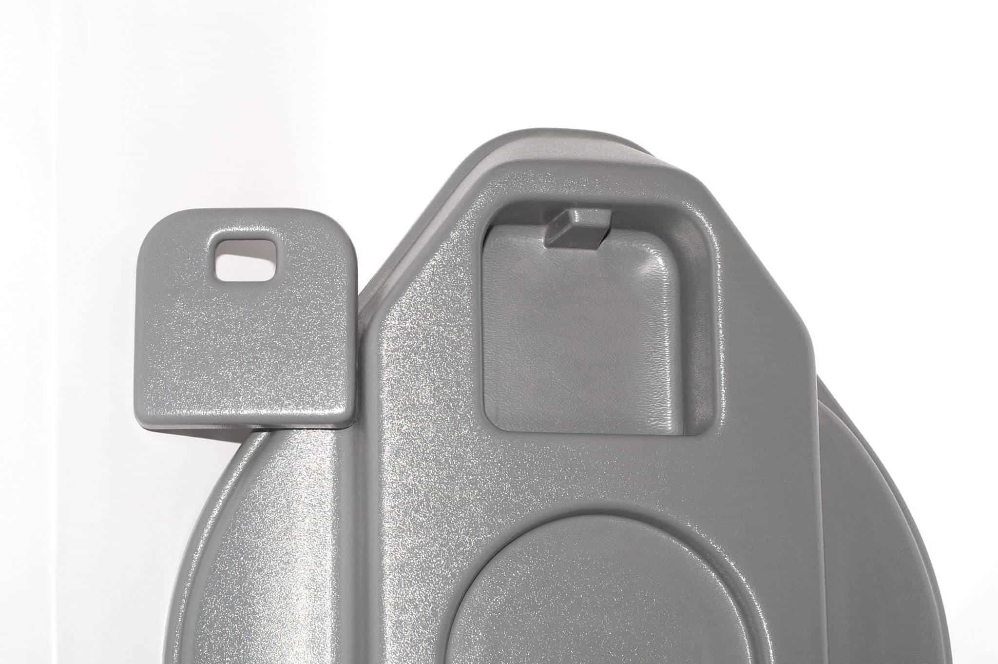 These custom covers for a floor care machine are trimmed into two different versions for two different machines. They are made in a custom gray because the volume is high enough to be able to afford a custom color. We also vacuum form a little door for a storage compartment.