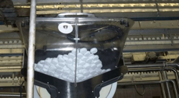 Our client’s customers like being able to see the bottle caps being dispensed in this custom thermoformed hopper. These hoppers have been made in lots of five at a time. The plastic is Transparent FDA Food Contact Approved PETG, and the glue is a FDA Food Contact Approved glue as well.